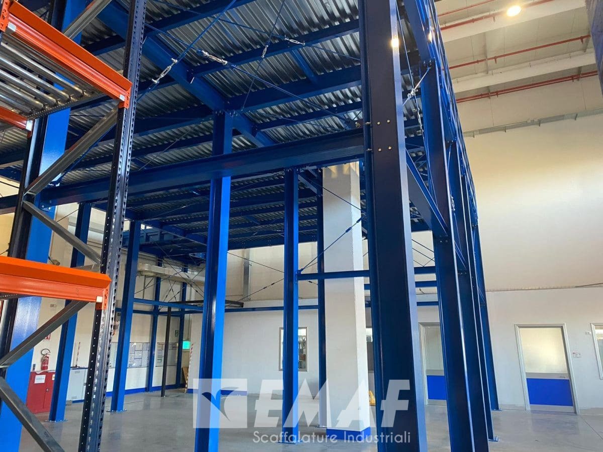 Il soppalco, che si estende su una superficie di quasi 150 mq, è stato progettato con precisione per garantire la massima sicurezza e funzionalità. La struttura antisismica mod. Palladio rappresenta un’eccellenza nel panorama delle soluzioni di stoccaggio e ha una portata di 250 kg per metro quadro, offrendo un’efficienza e una resistenza straordinarie.
