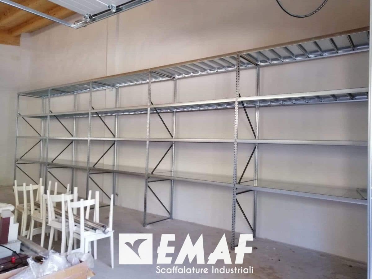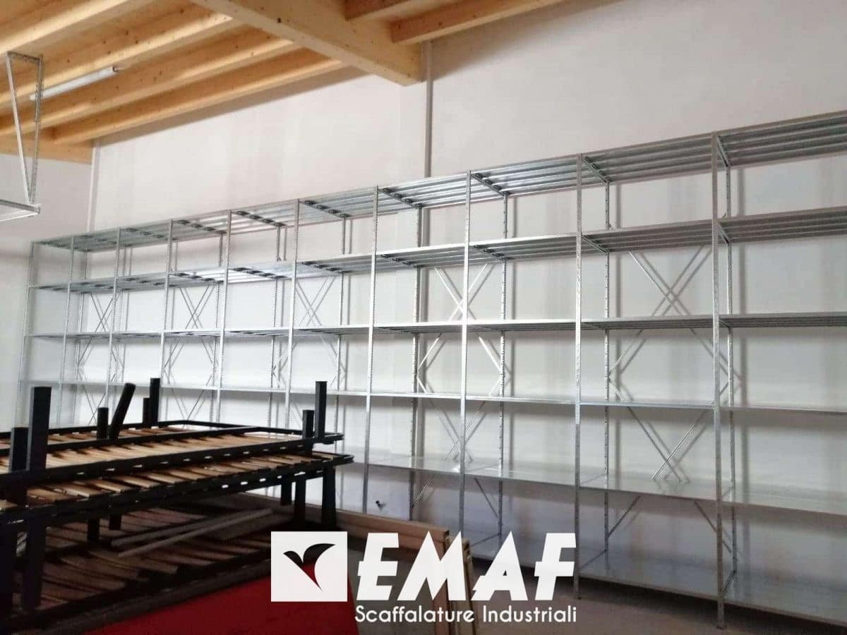 Installate una scaffalatura leggera EM36 Donatello e una scaffalatura per picking EM50 Tiziano.