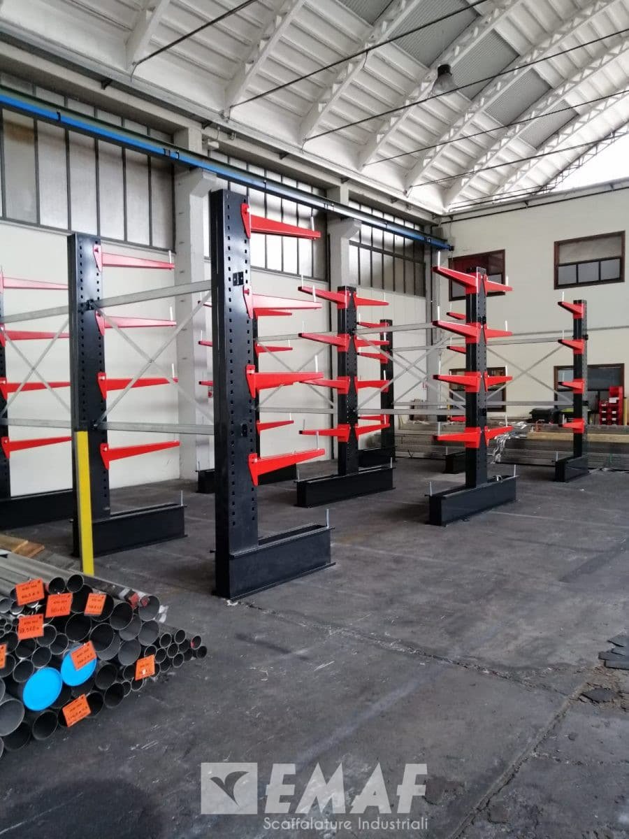 Nuova installazione di impianto di scaffalatura industriale Cantilever modello Mantegna a Padova, presso la Veneta Inox, grossista di acciaio inossidabile.