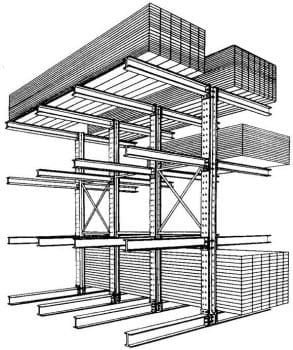 Nella scaffalatura cantilever le colonne possono essere o di tipo monofronte o di tipo bifronte e sono collegate tra loro in senso longitudinale