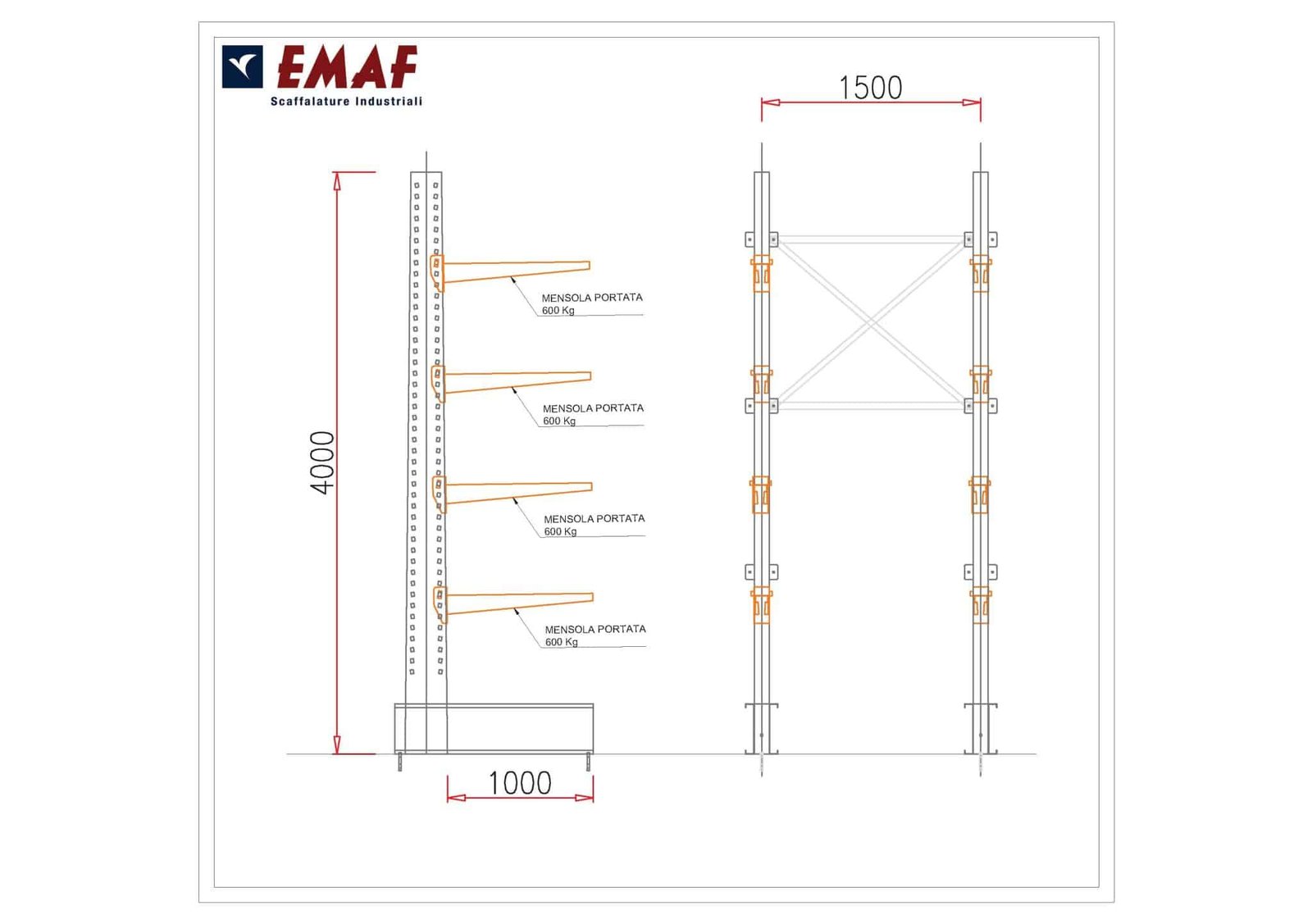 Cantilever metallico industriale mod. MANTEGNA – 2 colonne Monofronte da 4 livelli