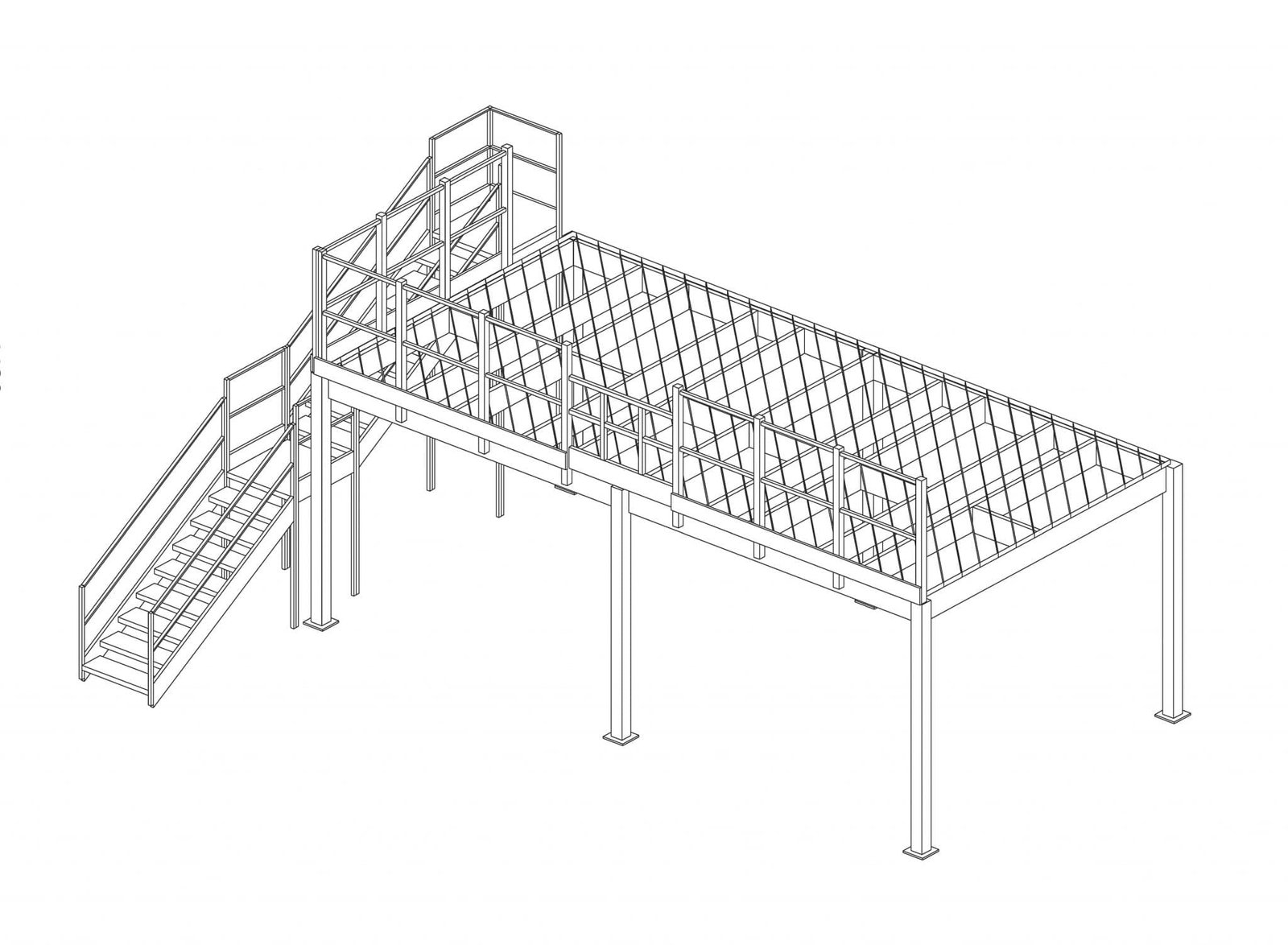 La struttura del soppalco industriale metallico mod. Palladio è fornita in acciaio strutturale ad