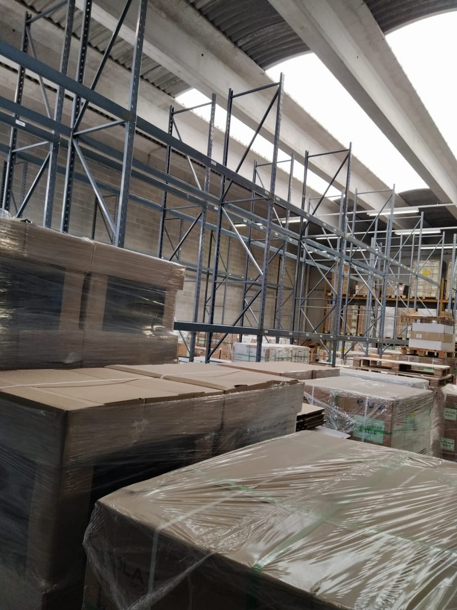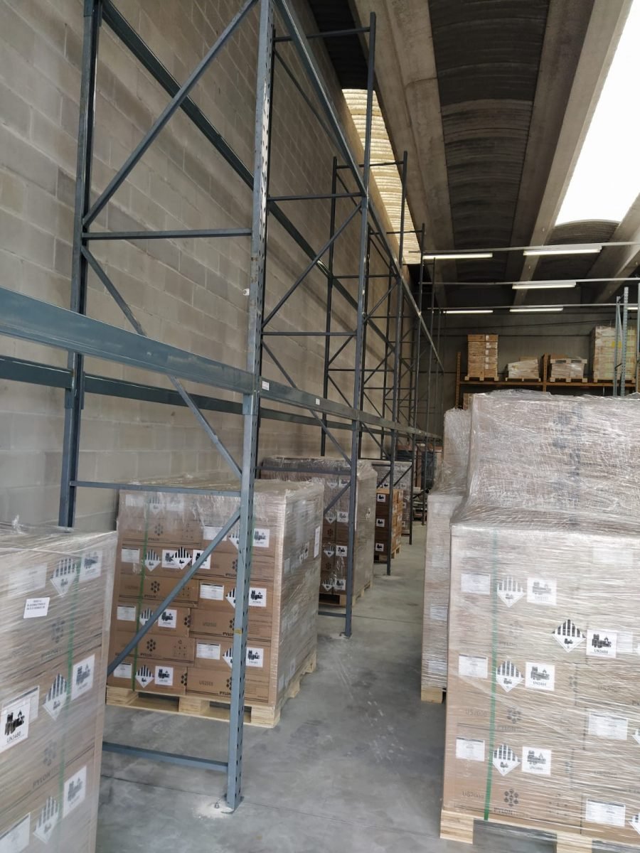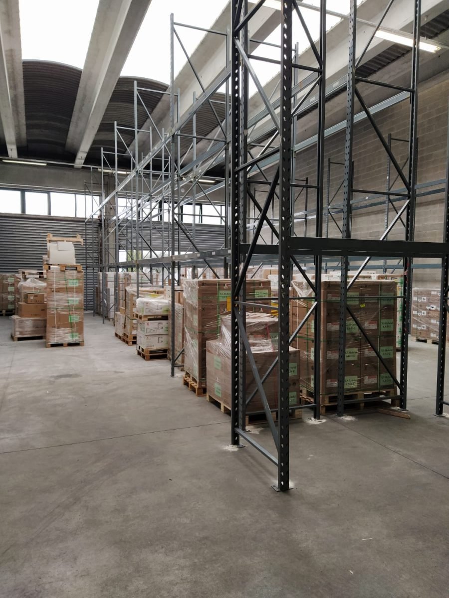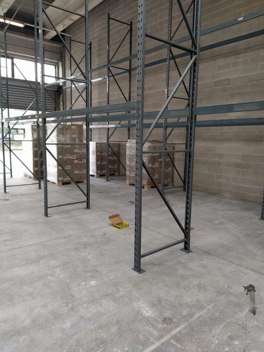 La scaffalatura portapallet installata è un modello Gamma Italia. L’installazione è formata da 22 campate suddivise su più file, alte 6000 mm e profonde 1000mm, per una lunghezza di 2700 mm. Ogni pallet può pesare fino a 500 kg. La scaffalatura è suddivisa su due livelli più terra, per un totale di 198 posti pallet.