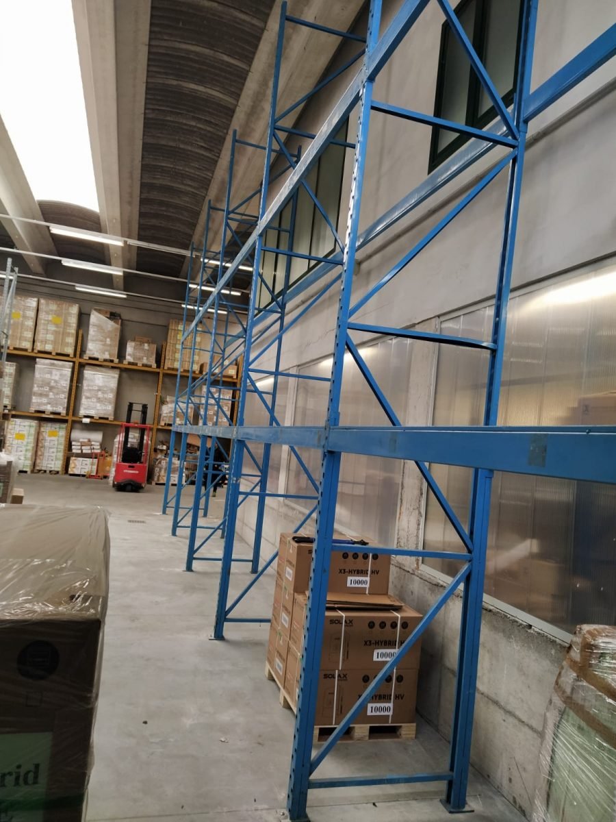 Installazione di scaffalatura industriale portapallet usata a Vigonovo, presso la Ditta Energy di Galta di Vigonovo (VE), impegnata nel settore degli inverter e sistemi di accumulo per fotovoltaico.