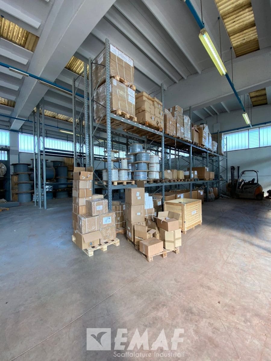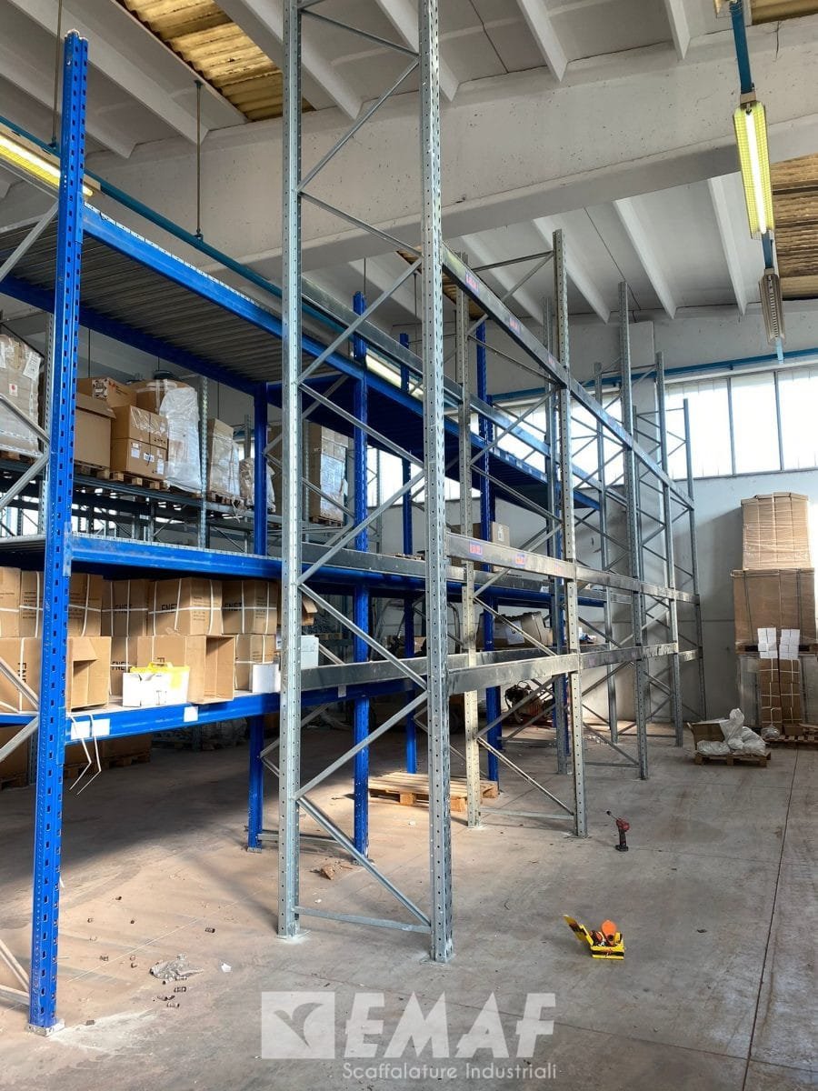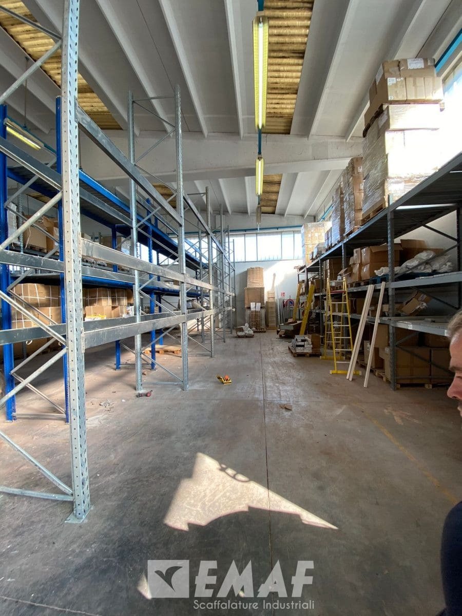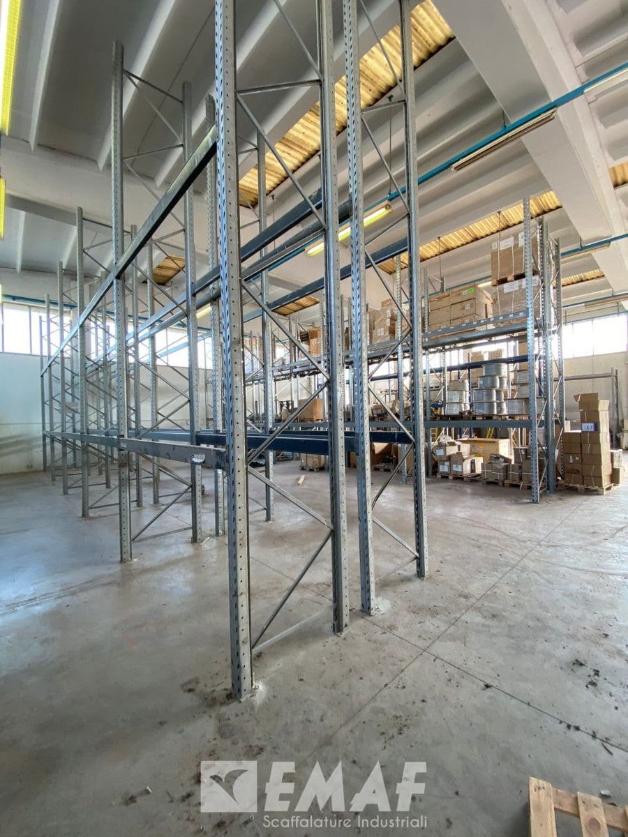 Fornite 70 correnti usate precedentemente mancanti e sono state montate 26 spalle alte 4500 – 5000 mm e 120 correnti da 2700 mm, tali da realizzare strutture di tre livelli più terra, con una portata per livello di 2000 kg CUD.